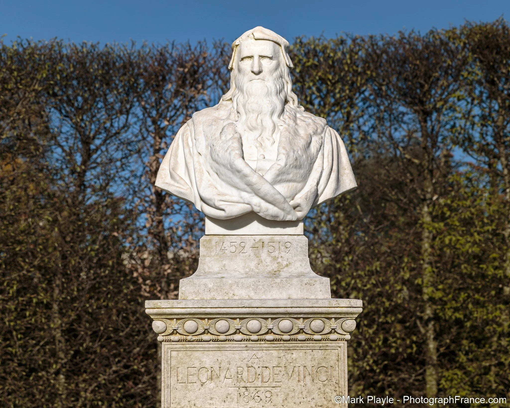 Bust of Leonardo, Royal Château Amboise. Photo: Mark Playle